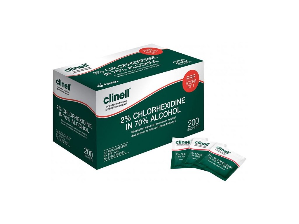 Složení aktivních látek: Isopropanol 70 %, chlorhexidin diglukonát 2 %.