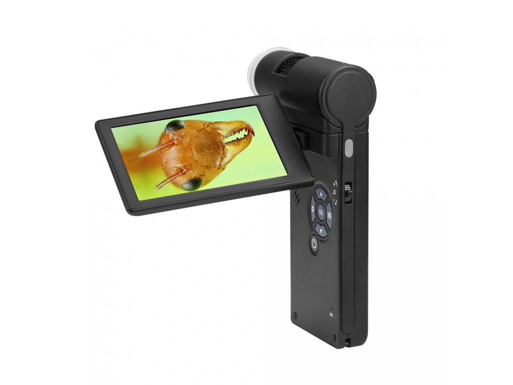 Obraz snímá fotoaparát se senzorem s rozlišením 5 MP. Na LCD obrazovku přenáší barevný obraz ve vysokém rozlišení. Tato obrazovka je výklopná a lze snadno upravit její polohu pro co nejlepší pozorování. Mikroskop také dokáže zachytit snímky a videa (tato funkce vyžaduje paměťovou kartu, která je v prodeji samostatně). K zachycení slouží tlačítko na těle mikroskopu. V případě potřeby lze mikroskop Levenhuk DTX 700 Mobi připojit k externímu monitoru, k televizi nebo k počítači. Veškeré potřebné kabely jsou již součástí sady.