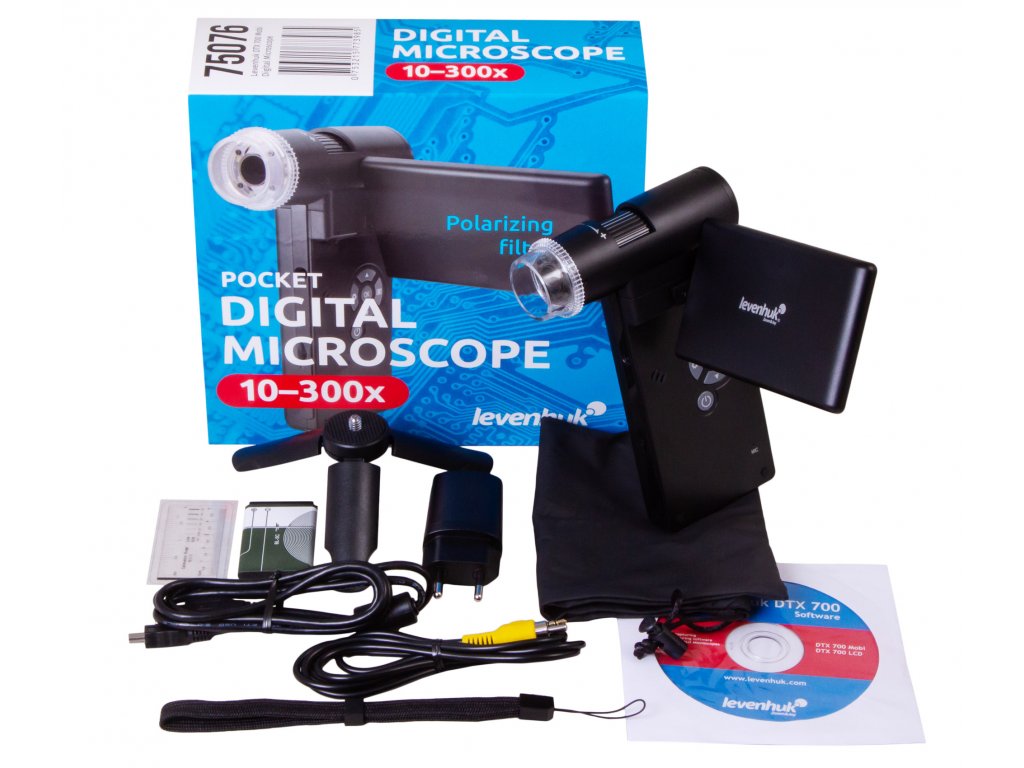 Levenhuk DTX 700 Mobi je přenosný digitální mikroskop, který je praktický na cesty. Díky kompaktní konstrukci se snadno vejde do batohu a lze ho snadno držet v jedné ruce. Tento mikroskop může být díky své nízké hmotnosti neocenitelným výzkumným nástrojem pro dítě. Hlavním účelem mikroskopu Levenhuk DTX 700 Mobi je však profesionální použití. Umožňuje studovat umělecká díla, nerosty, mince a řezy kovem. Také jej lze použít pro hodnocení kvality pájecích a opravárenských přístrojů. Přenosný mikroskop je často používán ke kontrole kvality zboží v obchodech a detekci růstu nežádoucích životních forem na ovoci a zelenině.